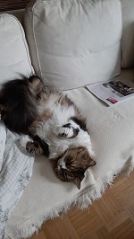 Daarna likt hij zichzelf af en neemt hij een comfortabele houding aan op de bank tot de volgende maaltijd wordt geserveerd.